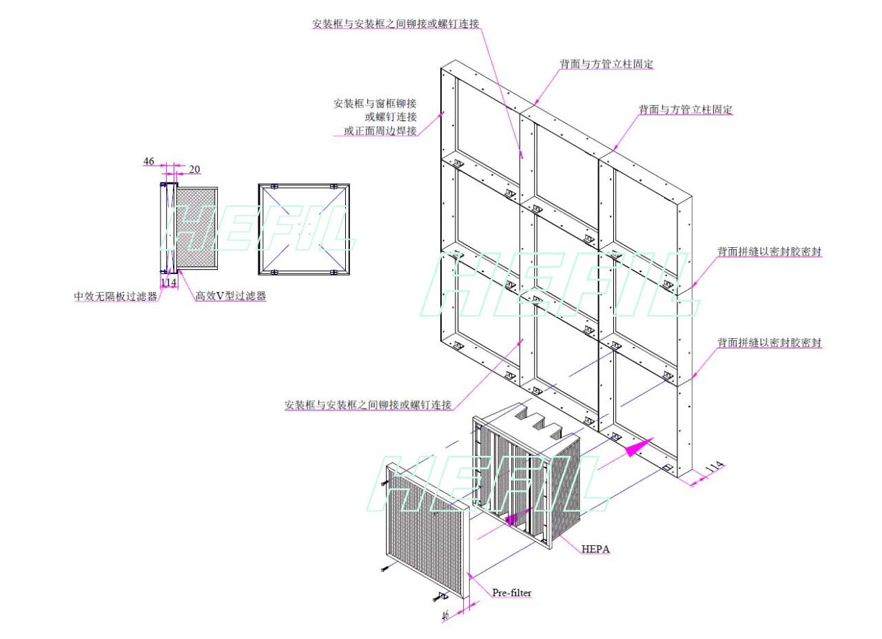 ◆在HKF框架上,可以安裝大多數(shù)國(guó)際通行尺寸一般通風(fēng)用過濾器,包括本公司生產(chǎn)的:HMV、HBM、HBP、HPP、HACH、HACF、HACB、HACD、HACV等型號(hào)。