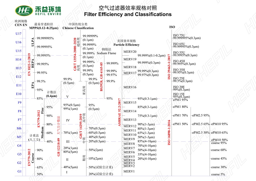 空氣過濾器效率規(guī)格對(duì)照表